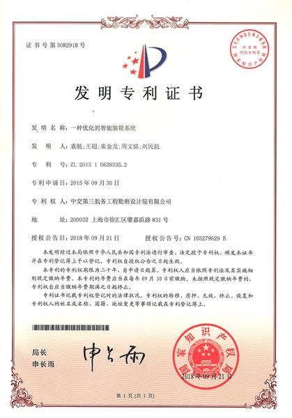 “一种优化的智能装箱系统”发明专利证书
